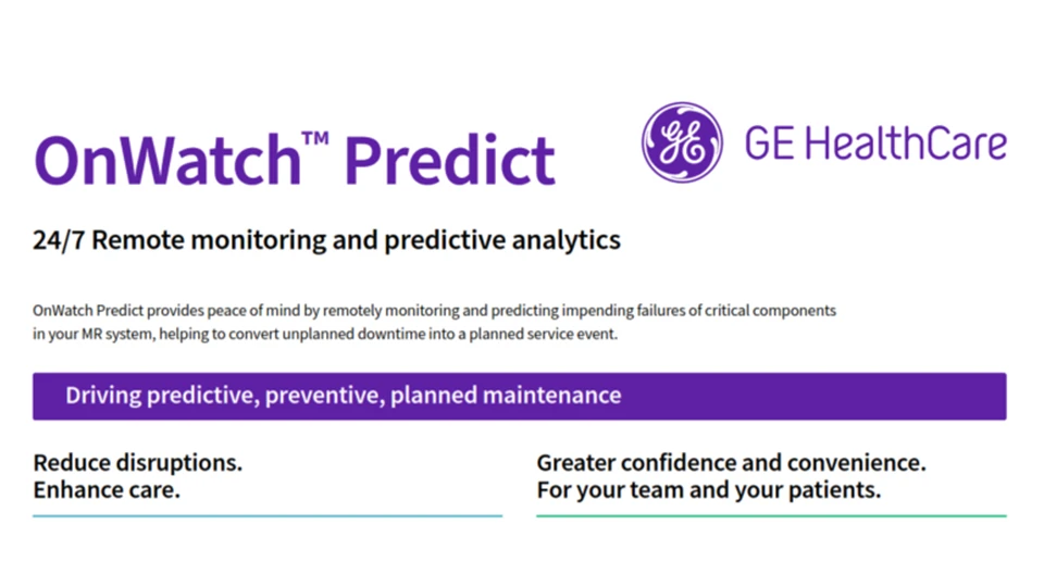 OnWatch Predict provides peace of mind by remotely monitoring and predicting impending failures of critical components in your MR system, helping to convert unplanned downtime into a planned service event.