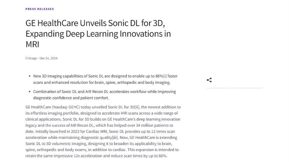 GE HealthCare Unveils Sonic DL for 3D, Expanding Deep Learning Innovations in MRI