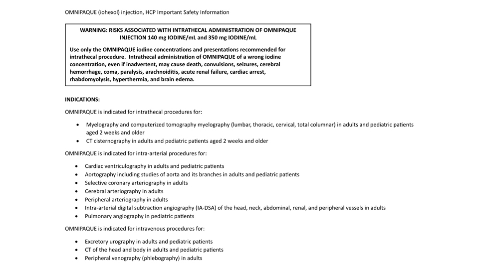 Important Safety Information for Omnipaque.