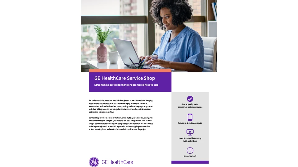 GE HealthCare Service Shop offers fast and convenient resources so you can stay focused on what matters — patient care.
